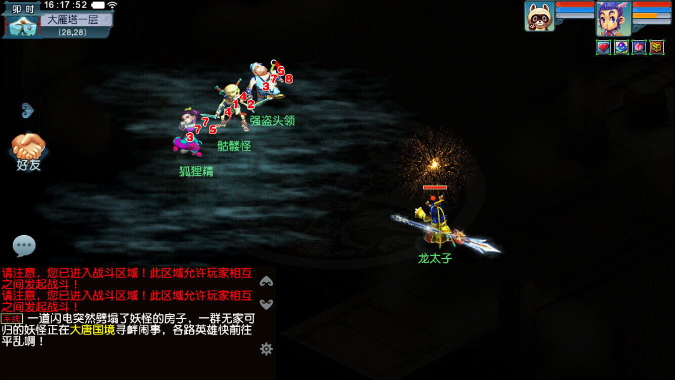 互通版战斗界面的另一个明显特点,是 “好友”等基础功能键被移动到了屏幕的左边中间位置。其中“好友”功能键直接显示在外面,而其他“宠物”、“帮派”等基础功能键可通过点击拓展箭头唤出。基础功能键位置的调整,为战斗功能键腾出更多位置,有利于战斗功能键的清晰展现,使整体的互通版战斗界面布局更加主次分明。