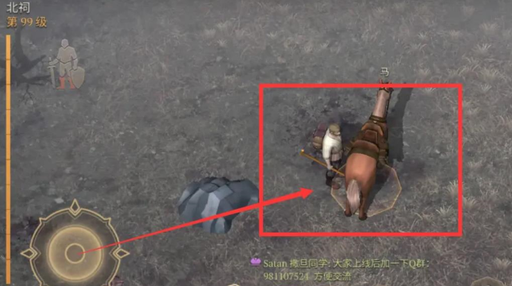2、然后使用隐身卷轴悄悄的来到马背后。