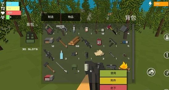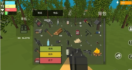 3、开启属于你的沙盒世界冒险,打造喜欢的武器和工具来面对各种类型敌人。