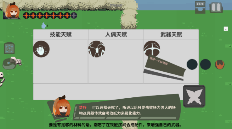 每次过关就升个武器的级,另外买东西有一个回血的小瓶在身上就行,有多的就买那个加20百分比最大生命那个太极(对了,这个描述也得改成百分之二十最大生命)。小瓶是每过一关回点血,前期很有用。另外前期不要开技能,蓄力蓄满了打,打不中可以在设置里有一页加瞄准线(打野猪可以迅速拉弓进行击退,不过主要还是用蓄力箭打输出)