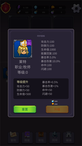 1、游戏内有着超多的玩法可以选择,冒险,技能,背包玩家都可以提升实力。
