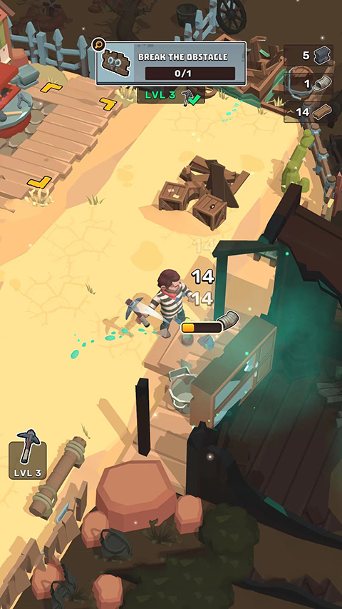 10、游戏中还有丰富的物品和材料等待玩家破坏收集,通过一边收集材料和一边升级铁锤,帮助主角逃离这座荒岛,以上就是逃生西部游戏的玩法了。