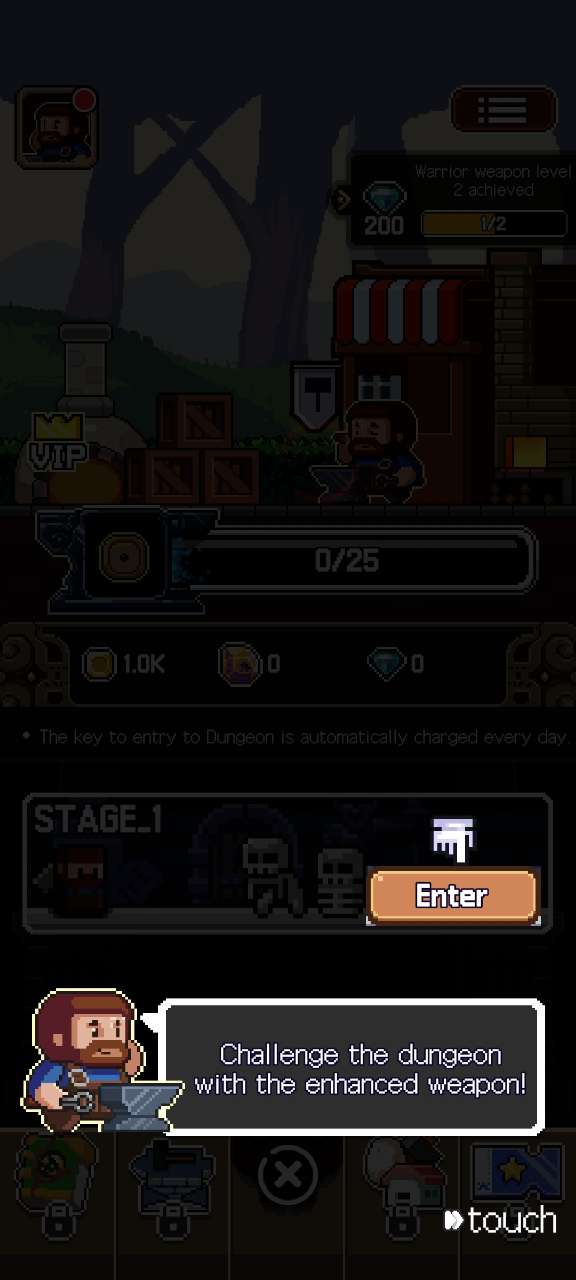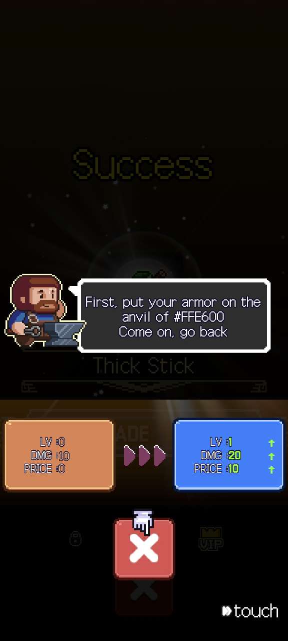 幸运升级游戏是一款 2D 像素风格的手机游戏。作为一名铁匠,踏上为战士冒险者锻造最佳装备的旅程!通过在简单的点击游戏中添加成长因素,增强了放置游戏的乐趣。测试您的运气,在与冒险家的旅程中创造强大的装备,并最大限度地提高您的战士的能力。