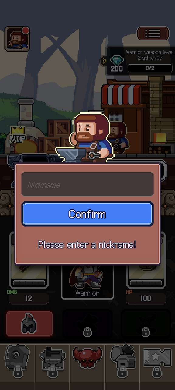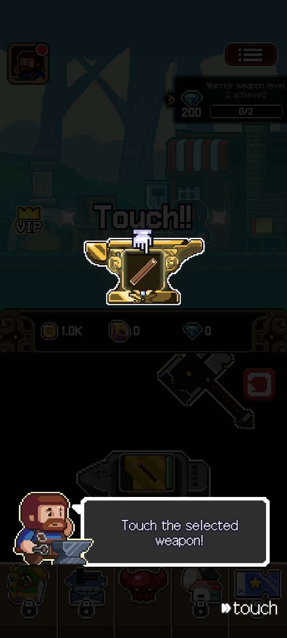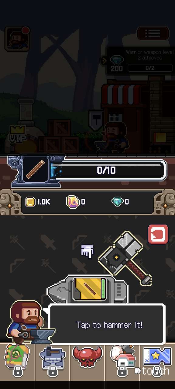 1、像素风格的手机游戏,你将扮演一名铁匠,踏上为战士冒险者锻造顶级装备的征途。
