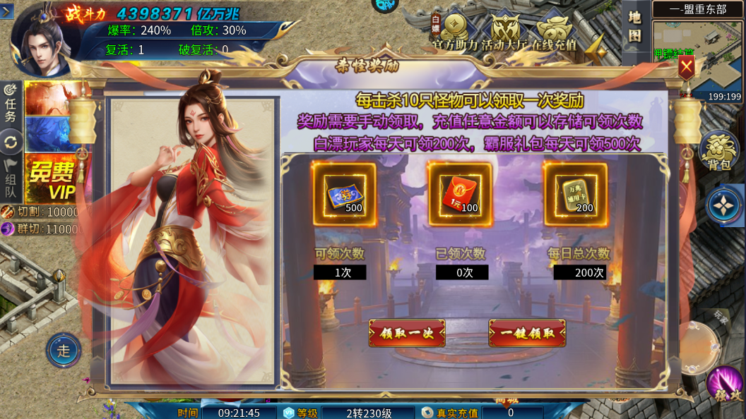 3、当击杀一定的怪,可在杀怪豪礼中领取福利
