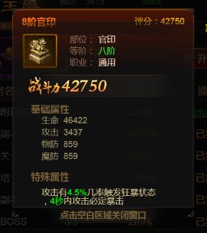 当爵位晋升到指定次数,你相应的“官位”也会得到提升,从而获得新的“官印”,高阶官印的基础属性值更高,并且特殊属性效果也会更给力,如8阶官印拥有几率触发狂暴状态带来必定暴击等效果,将为你的战斗带来助益惊喜哦。