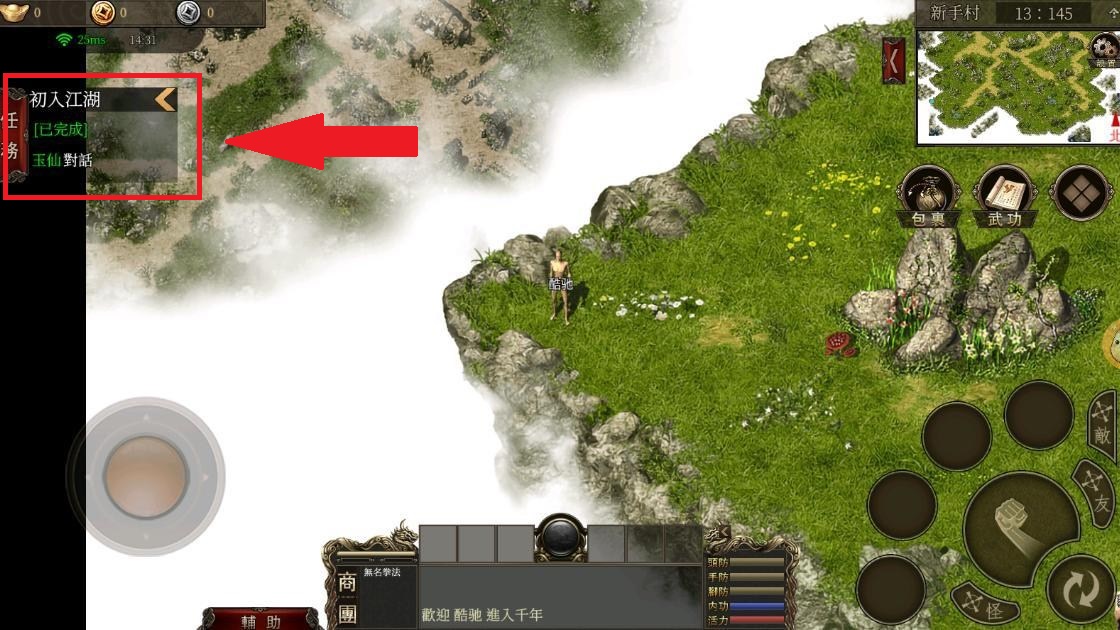 1、进入游戏后我们点击左侧任务栏,点击玉仙会自动开始寻路,接著完成主线任务。