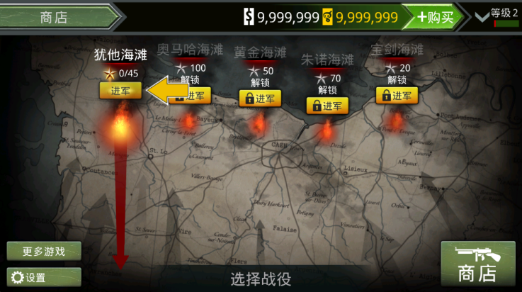 具备5个单独的各自内含125个独立关卡的闯关战役,根据WW2史实分别抢攻朱诺、宝剑、黄金、犹他与奥马哈海滩。摧毁敌军的大炮、强大坦克,带领盟军不断挺进法国核心地带。夺下大炮、占领军事置高点,以高射炮拦截敌方战绩、将他们轰出大西洋!