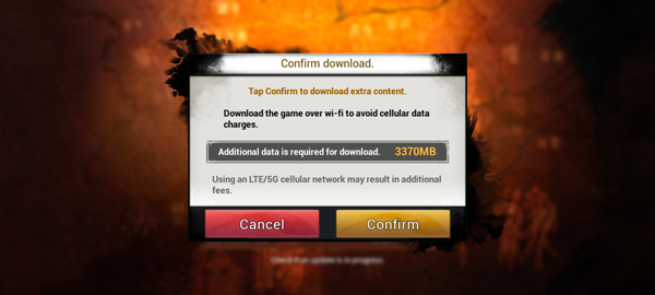 3、第一次进入游戏的玩家需下载3370MB的数据文件,耐心等待下载完成;