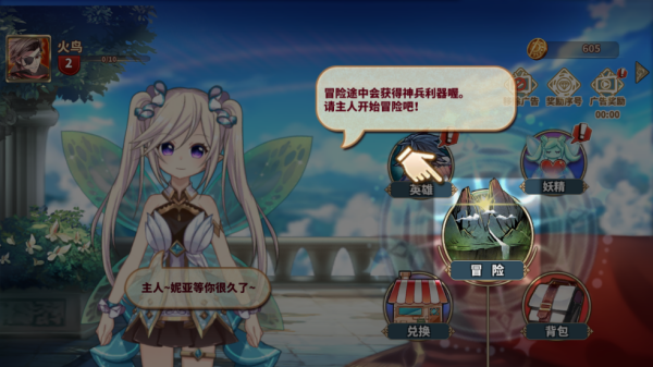 8、完成之后,进入游戏首页,玩家可以对自己的英雄进行培养或是进行冒险闯关。