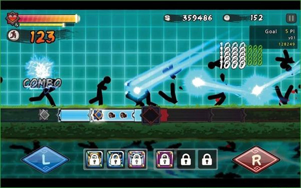 整个游戏的核心还是非常有趣的,那就是绝对的公平,正如其名字所说的,一击必杀。不管是对于你还是对于敌人,只要被打到一下都会死亡,这在一个金钱至上,充值泛滥的市场上,简直就是一股公平的清流啊!等这个游戏你玩的够熟练之后,就不会再拘泥于两个音轨条了,你可以盯着屏幕上,然后左右左右打出一套炫酷的连招,看上去视觉效果还是相当不错的。