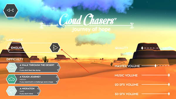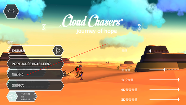 云之追逐者中文版是一款画面非常唯美的沙漠题题材冒险游戏,游戏故事背景设定在浩瀚无垠的沙漠,玩家要控制一对父女在这片荒芜之地进行冒险,并完成寻找新家园的使命。水是在干旱的沙漠里必须的重要资源,想要生存最重要的就是水源,所以你需要通过你的努力找到,并且存活下来,同时也可以用来在城镇中交换各种物品,另外游戏里边需要作出的决定都会影响到人物生死,要谨慎选择。