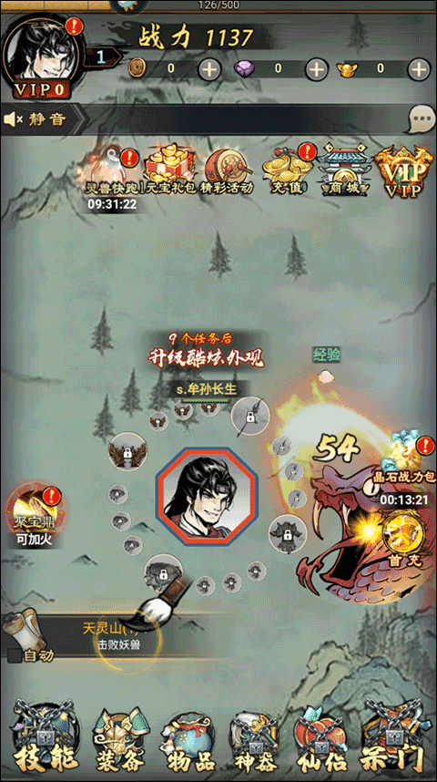 2、首先,进入游戏后即可看到主角开始历练,玩家不需要操作即可完成诸多任务,在此期间玩家可以好好欣赏游戏的玩法;