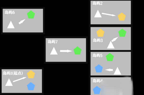 本图解密思路为:通关对话线索依次前往七个岛屿,最后到达终点;