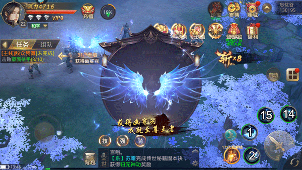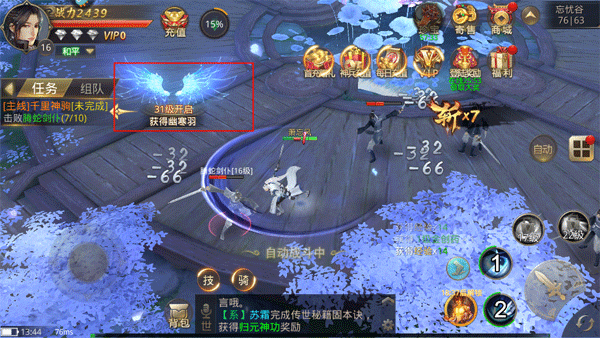 1、游戏中经典的挂机功能,可以帮助新手玩家尽快升级,完成之前的主线任务;