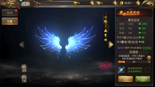 5、玩家后期还需要和湘儿进行交流,放烟花向朋友报平安,找到忘忧花解救忘忧姑娘,将它交给黄帮主,就可以正式获得幽寒羽这项道具了。你可以对这项道具进行培养、幻形、进阶等操作,让你整体战斗力不断提升。