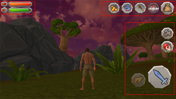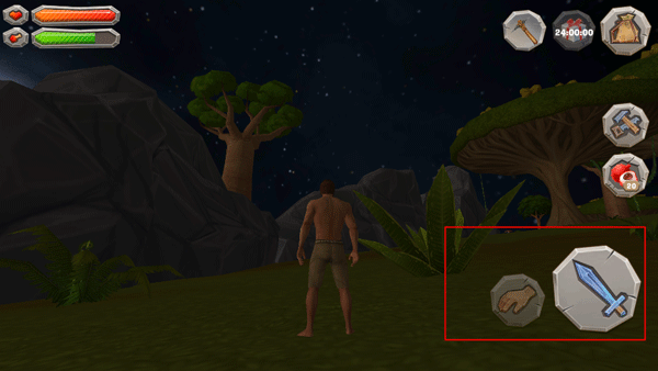 拾取功能只有当人物靠近可以拾取的东西之后,才能长按拾取键获取东西;而剑图标就是用来防御或攻击的按钮了。