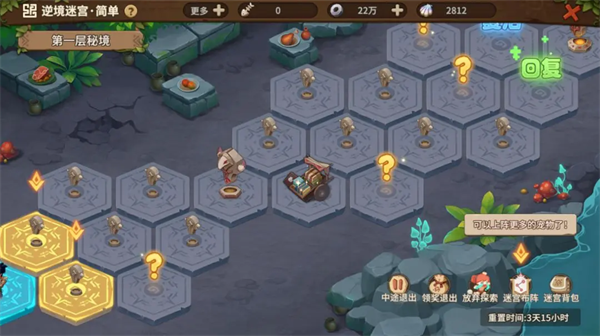 进入后先选择备战宠物,逆境里的宠物死亡则无法再次登场。(有复活BUFF)。一周内随意安排攻略时间,“中途退出”可以再进入攻略。”领奖退出”则消耗门票次数,无法二次进入。”迷宫布阵”按键可以自由切换阵容。迷宫内无法更换武器,可以中途退出迷宫,更换好武器后再进入。”放弃探索”可重置玩法进度,重新选择难度进入,不消耗门票。每场占多最多持续50回合。