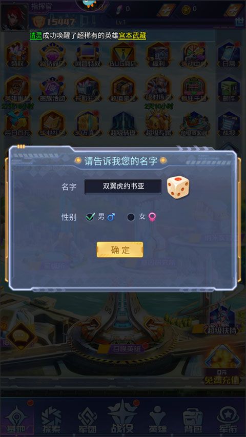 1、下载安装好游戏,首先先创建好名字进入游戏。