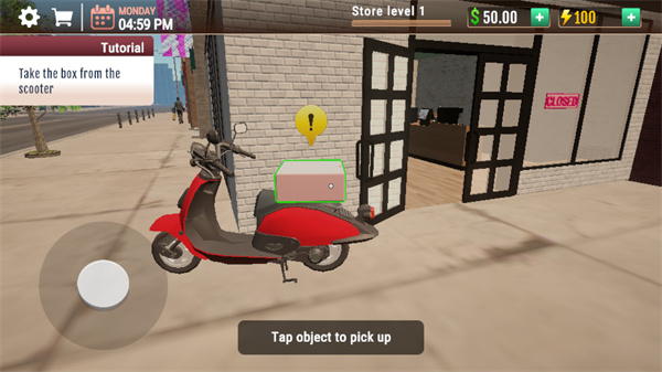 1、进入游戏后,玩家需要通过虚拟按键控制角色移动,对准电动车的包裹。