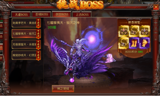 稀有boss是非常罕见且强大的boss。需要更高等级和贵族才能挑战它们。某些地图只会在服务器开放一段时间后才会出现,例如太虚、创世和上古BOSS需要服务器开放7天后才会出现,圣域BOSS是在服务器开放第一天就可以挑战,所有玩家都可参与。