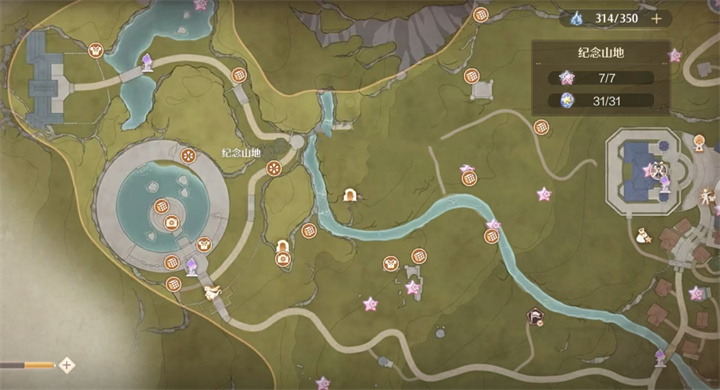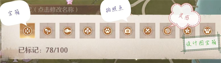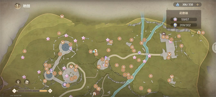 注意:因为花愿镇地图没有开放完,现在地图中现有不全,在开放后会全补上宝箱和灵感露珠