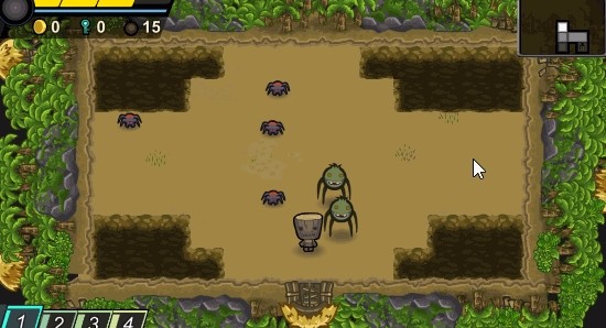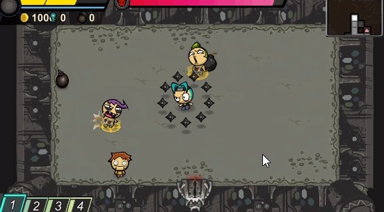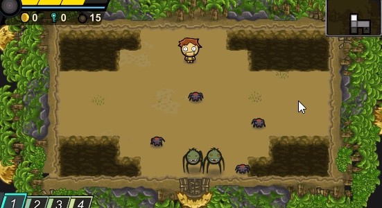 暴走熊孩手游(暴走熊孩Demo)地图很多,而且难度不小哦,有的怪物能够释放很密集的弹幕,走位稍微慢一点就会被喷到,除了怪物的攻击,有的房间中会出现各种机关,有的会扣血,有的虽然不会扣血,但是对行动有影响,需要小心应对。再就是火把和酒桶啥的,都可以打碎的,打碎之后有几率获得道具和钥匙,有的房间必须用钥匙才能打开,所以钥匙的作用非常的大!