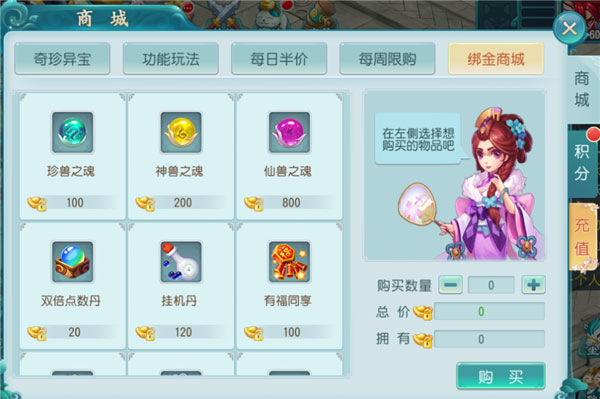 小Tips:充值元宝是获得绑定元宝最快的方式