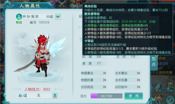 c、人物等级≥服务器等级+5时,获得经验减少1/3