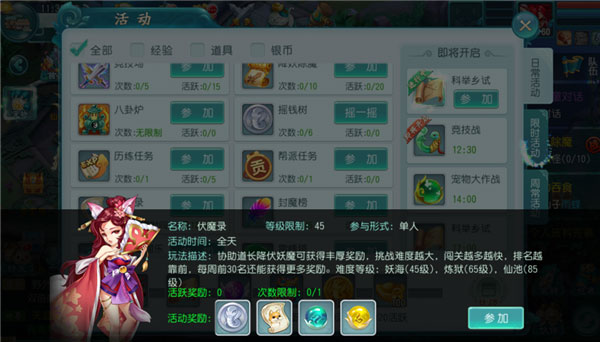 参与方式:点击“日程→伏魔录”