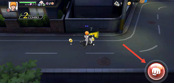 1、在游戏中玩家在左边屏幕滑动来操作角色的移动,右边为攻击按键
