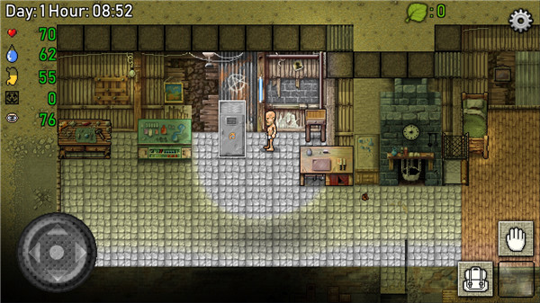 开局会找到饮用水一瓶(洁净的饮用水底色是蓝色,污染的水是黄绿色。)瓶子留着可以装水,