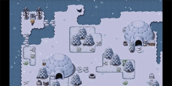 出仓库,左边有一个被雪覆盖的箱子,靠近得到“宝箱钥匙”x1。大喜,进屋使用钥匙打开宝箱,得到“短弓”。