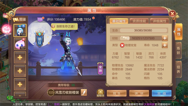 大家在选择宠物的时候,可以针对自己的职业特性(物理/魔法)选择一攻宠+一血宠的组合,可以配合不同场合的需要使用。