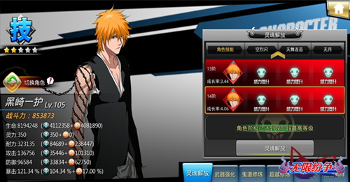 每逢10级的武器强化会需要特殊的突破道具,前期武器强化需要浅打之灵和部分灵子,通过成就奖励和平时通关所得的材料能够轻松完成强化,而后期的武器强化则需要角色对应的武器之灵,例如“黑崎一护”武器突破需要“斩月之灵”。 许多角色的武器之灵可以在其对应的精英关卡通关奖励中获得,各商店也会随机出售,所以平时在商店中遇到了千万不要错过。武器强化时灵子不够怎么办?别忘记了番队的助战功能,还有每日的地狱蝶活动,灵魂试炼闯关等,这些都是能够获得海量灵子的地方。