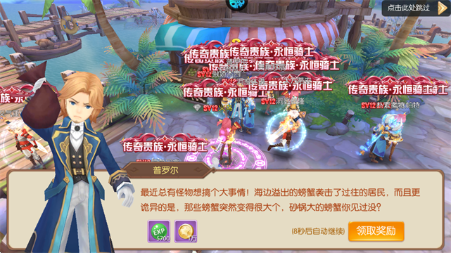 1、游戏会自动开启挂机系统完成主线任务,每一次对话都可以获得大量的经验值、金币和装备。