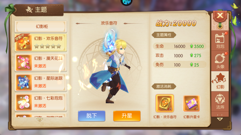 2、上线可以领取强大的法阵、幻影、头像和泡泡,解锁后会大幅度增加生命值和战斗力。