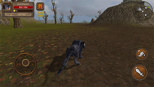 1、进入游戏后,通过滑动左侧的屏幕控制剑齿虎进行移动。