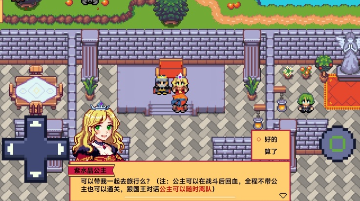 2、进入游戏后,先与公主和国王对话,了解故事背景,并完成初始剧情。