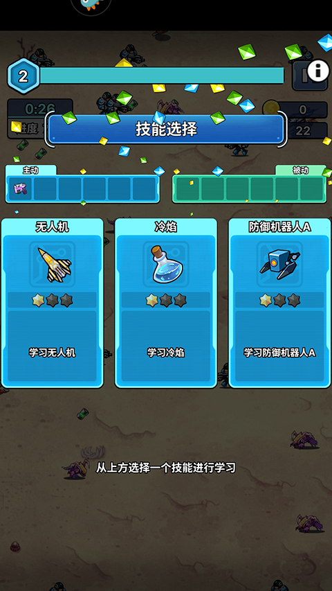 2、当击败一定的敌人升级后可以选择学习技能来强大自己。