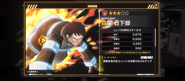 炎炎消防队炎舞之章日服(炎炎炎舞)是一款全新的角色扮演手游,该游戏由人气动漫《炎炎消防队》改编创作而来,里面有着各种精心的风格设计以及人物内容,玩家可通过招募抽取原著人物角色,如森罗日下部、亚瑟·波义耳、秋樽樱备、环古达等,然后通过升级养成来展开全新的冒险之旅。