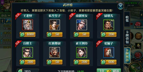 2、试剑天下,每天可以挑战三次,战胜就可以获得紫色的卡牌,想要挑选合适的卡牌获取,需要VIP6才可以刷新哦