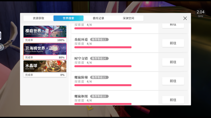 收集分为四个类型: 探索 收集 限时挑战 世界挑战