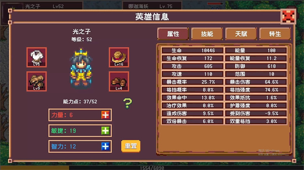 开局觉醒神级天赋是款经典像素风格动作角色扮演游戏。在该游戏中,玩家们需要做的就是消灭所有的黑暗势力,觉醒神级天赋,带领着所有人类走向光明,恢复光明。玩家可以选择手动操作或放置挂机的方式进行游戏,极大地提升了游戏的灵活性和可玩性。喜欢的小伙伴快来一起试试吧。