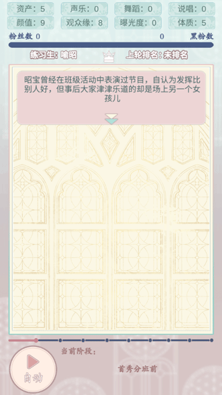 重生顶流练习生游戏是一款关于选秀的休闲文字游戏,单机简单好上手,在游戏中她将手撕绿茶女二,脚踢普信富二代,与节目组斗智斗勇,和集美一起过五关斩六将,最后成功C位出道,走向属于她的闪耀星途。