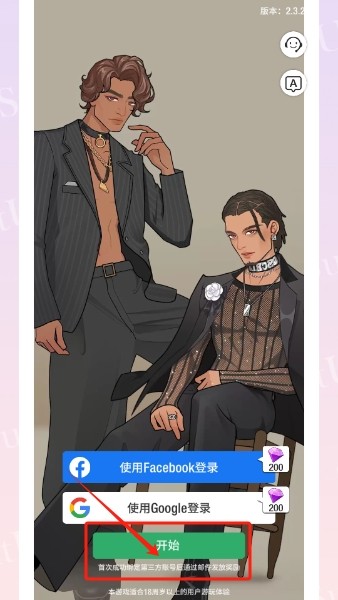 1、点击开始,这个地方注意一下,使用上面两个方式登录游戏,可以获得200钻石的奖励。