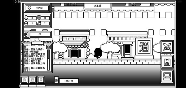 如下图所示,当前人物所站的地方是封魔塔在凉玉城的入口,点击屏幕最右边的三个大键的第一个也可以进入封魔塔;左手边坐在地上的那个老头是传说中会降龙十八掌的丐帮帮主--粥星星!