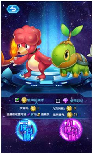 扭蛋机:消耗彩钻或扭蛋币抽取精灵。