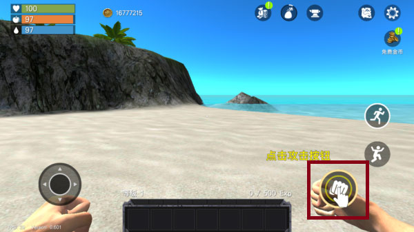 3、点击“拳头”可以进行攻击,也可以点击屏幕进行攻击