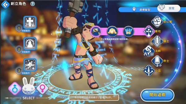 由你的决定将成为剑士、骑士、 小丑、法师、祭司中一个